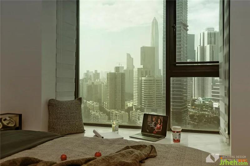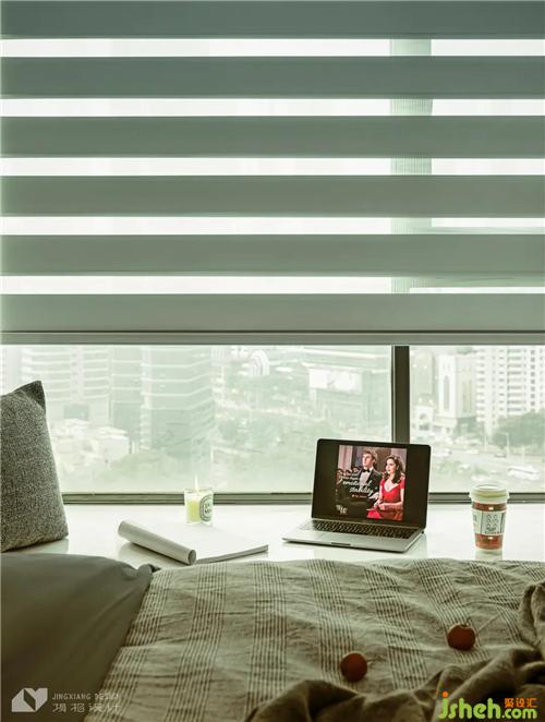 屋主希望臥室更具情調(diào),因此我們保留原始飄窗設(shè)計(jì),購(gòu)置柔軟的抱枕,設(shè)計(jì)出一個(gè)獨(dú)立的休閑角,平日女主人可以在這里刷劇、看書(shū),暢享下班后的個(gè)人時(shí)光。