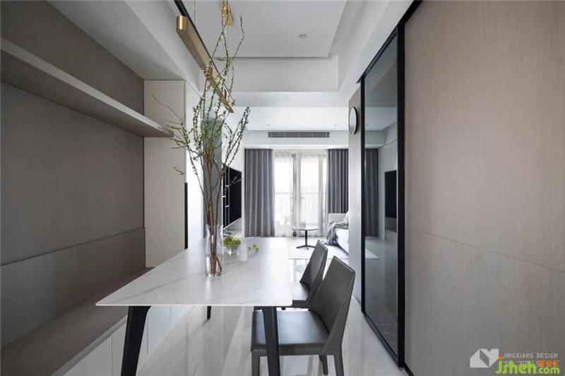 摒棄大拆大改,尊重原有空間,巧設(shè)柜體,妙用玻璃,汲取自然智慧,布置綠植,于無聲處為為屋主打造實(shí)用與顏值兼?zhèn)涞募摇?