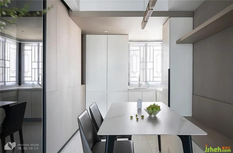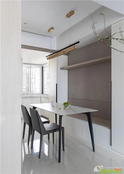 3.餐廳設(shè)置卡座代替餐椅,解決一家六口用餐擁擠的煩惱。