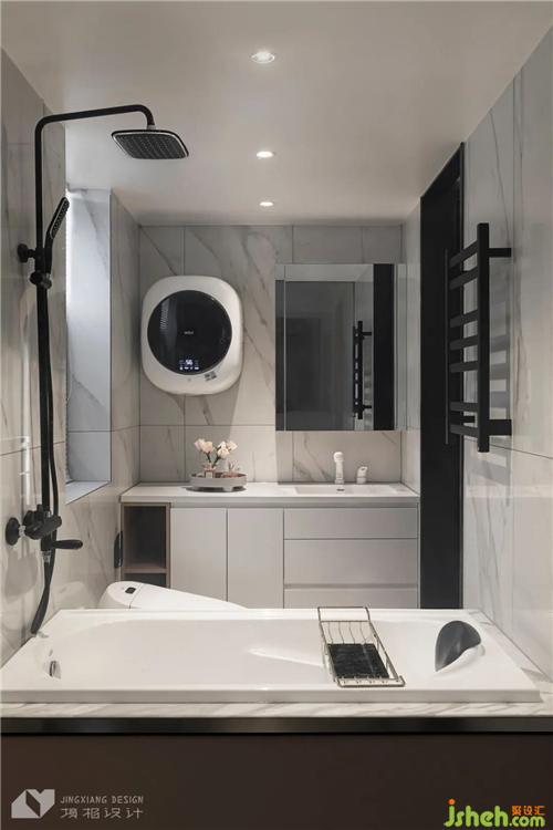 主衛(wèi)U字型布局,實現(xiàn)空間利用最大化,一側布置干區(qū),一側安裝浴盆,一天的煩惱與疲累在熱氣蒸騰中盡可拋卻。