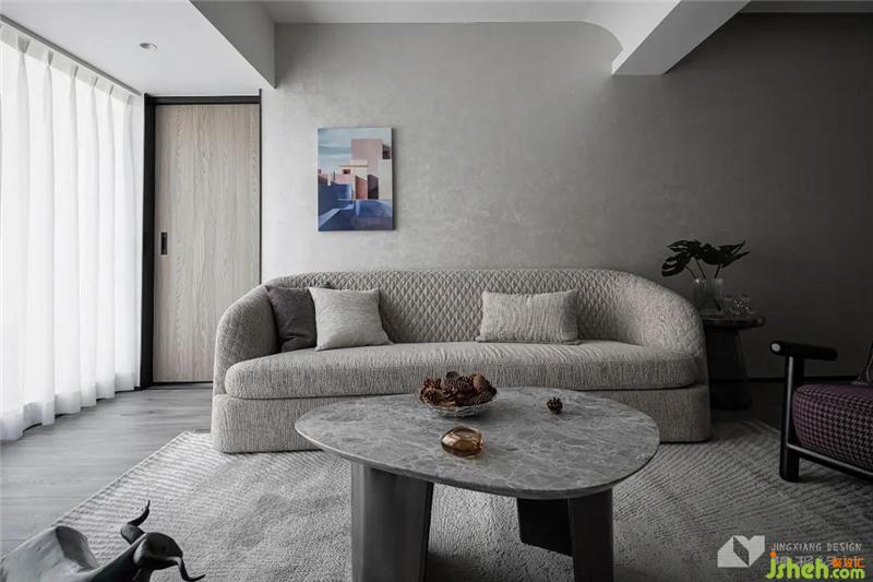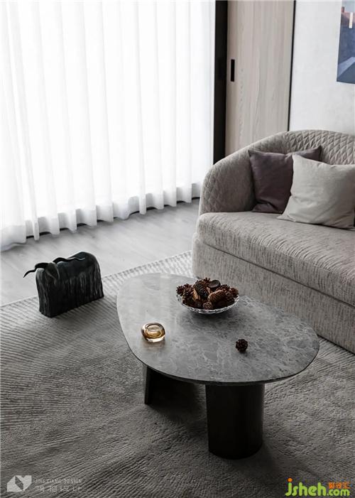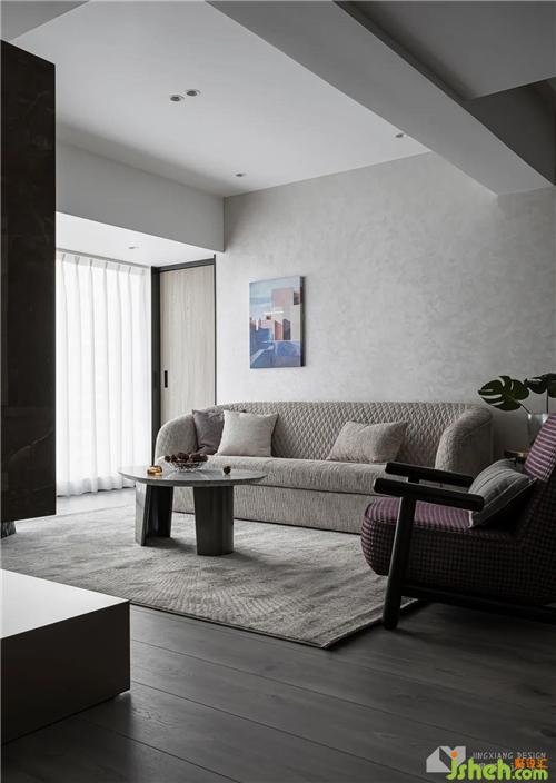 低矮家具,以圍合姿態(tài)迎合弧形頂面,形成和諧互動。紫羅蘭單人沙發(fā)椅,獨有的優(yōu)雅、浪漫風情,引領視覺焦點,烘托出高級的空間氣質(zhì)。