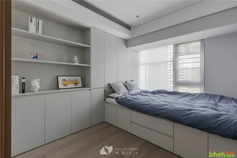 The ocean is blue, injecting vitality into the gray space, the furnishings are simple and childlike, and perfectly fit the identity of the resident. The tatami bed hides the storage space, hiding the storage invisible.