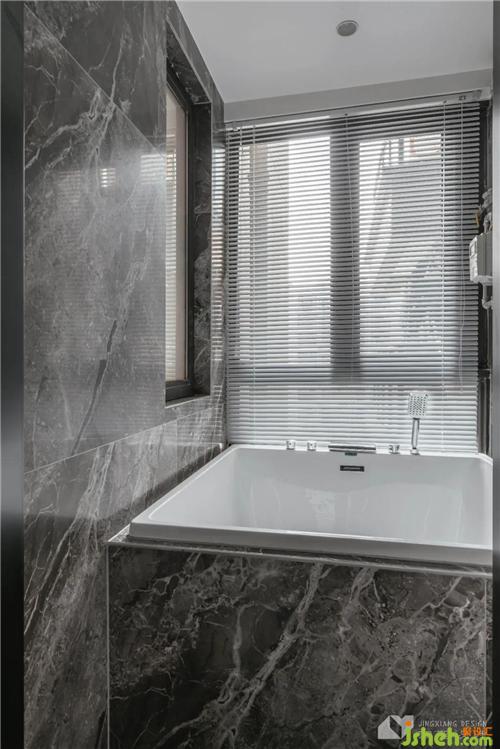 將原始廚房的小陽(yáng)臺(tái)納入衛(wèi)生間區(qū)域,布置嵌入式浴缸,打造舒適泡澡間,一天忙碌工作后,熱氣蒸騰中疲累也隨之消散無(wú)蹤。