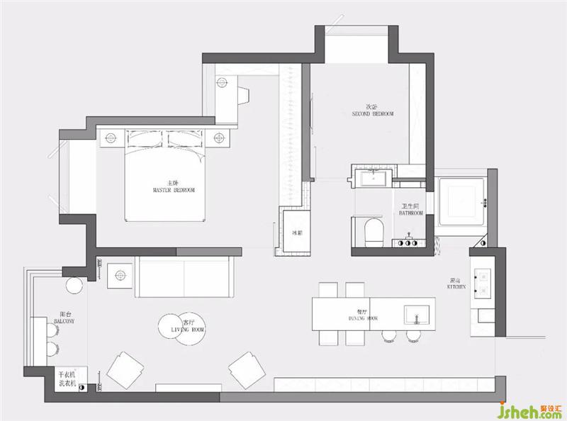 The small balcony of the original kitchen is incorporated into the toilet area, and the embedded bathtub is arranged to create a comfortable bath room. After a busy day's work, the tiredness in the heat transpiration will disappear.