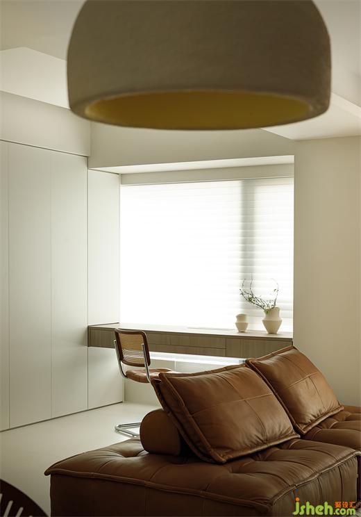 境相設(shè)計(jì)師在客廳增設(shè)一整排柜子為將來(lái)可以收納更多的物品,同時(shí)在窗邊安排了書(shū)桌位。
