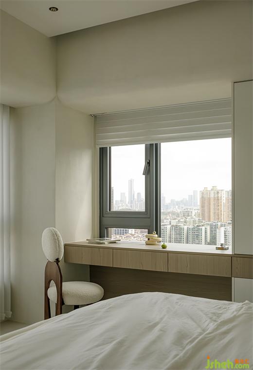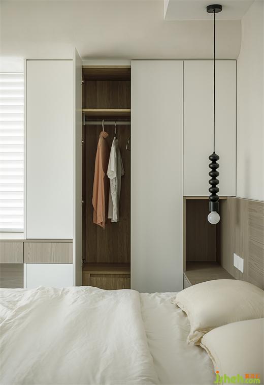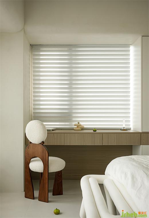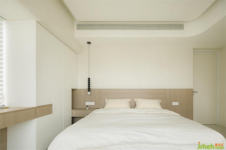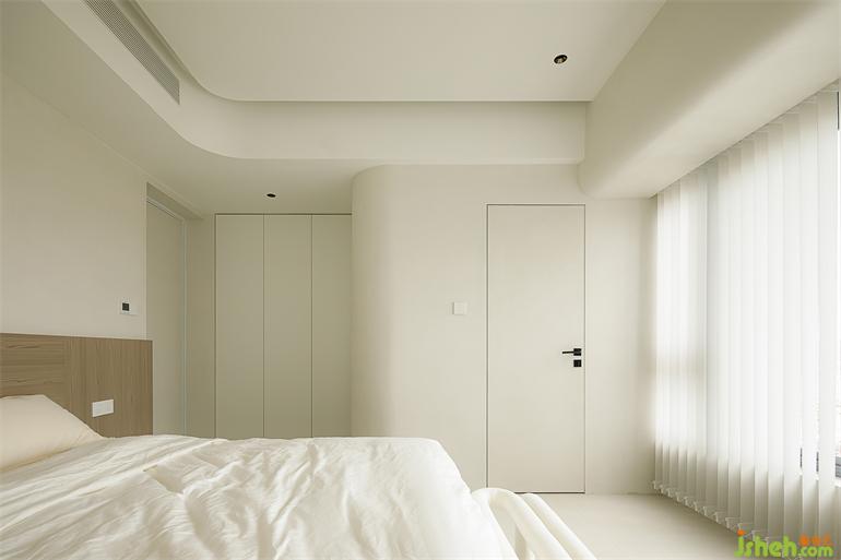 主臥擴(kuò)大了進(jìn)門玄關(guān)并增加衣柜,內(nèi)推了主衛(wèi),境相設(shè)計(jì)再將原直角導(dǎo)圓處理來弱化空間的銳角。