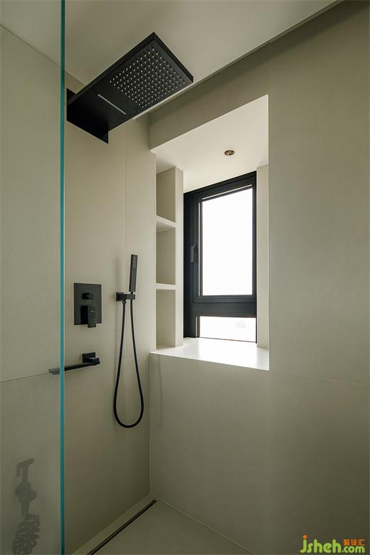 主衛(wèi)均出一點空間給玄關(guān)區(qū),利用飄窗臺做洗漱臺,做成三分離。