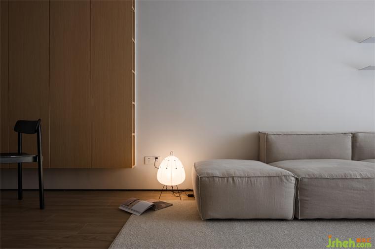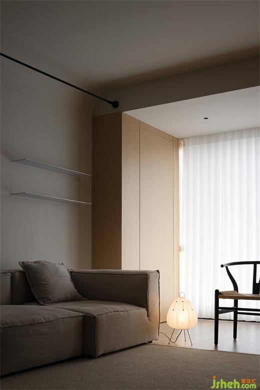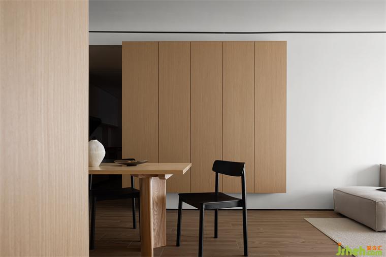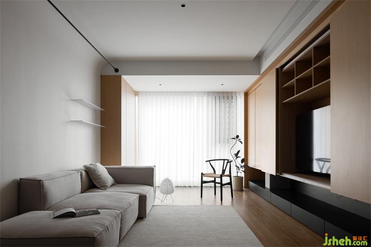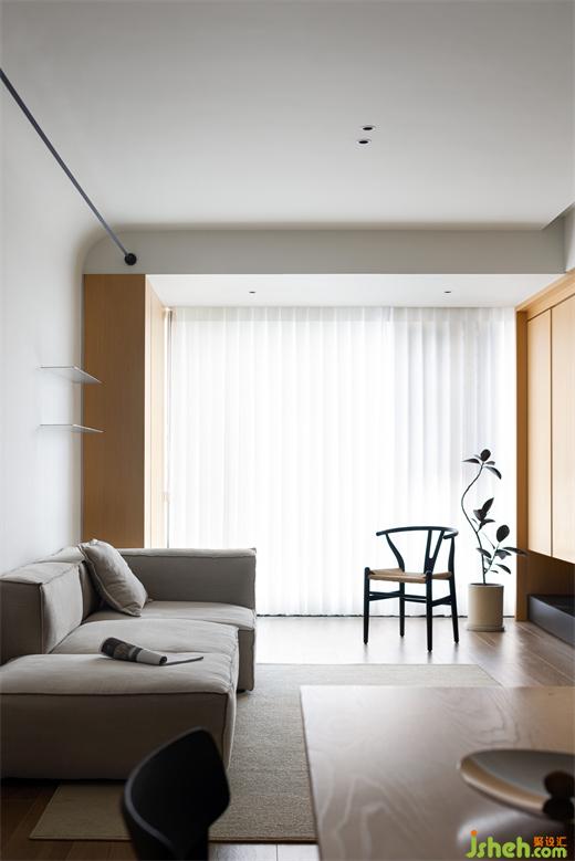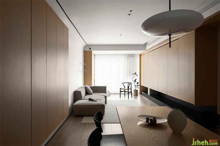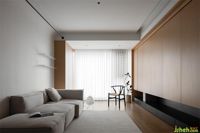 木作為造房子傳承下來最基礎(chǔ)的材料,回應(yīng)了樸素與自然,裝修設(shè)計(jì)而原木與陽光是整體空間節(jié)奏的連接。為了讓視覺上有更好的體驗(yàn),我們將陽臺與客廳合并,保持穿透外也讓客廳空間更顯大。