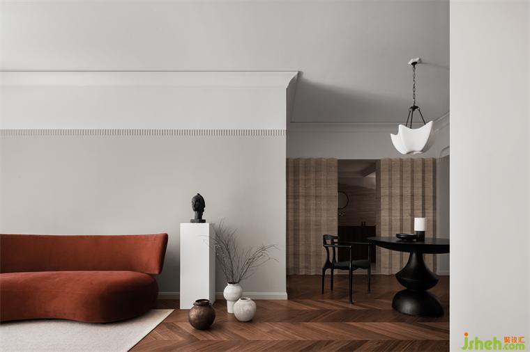 色彩在現(xiàn)代東方私宅設(shè)計(jì)中起著至關(guān)重要的作用,在這個(gè)空間中中性色提供了平靜放松的氛圍。“悠然中找尋自我的狀態(tài),空間被賦予開放、優(yōu)雅、寧靜的氣質(zhì),不同紋理與風(fēng)格的相互碰撞,定義出回應(yīng)屋主獨(dú)特藝術(shù)訴求的空間?!?