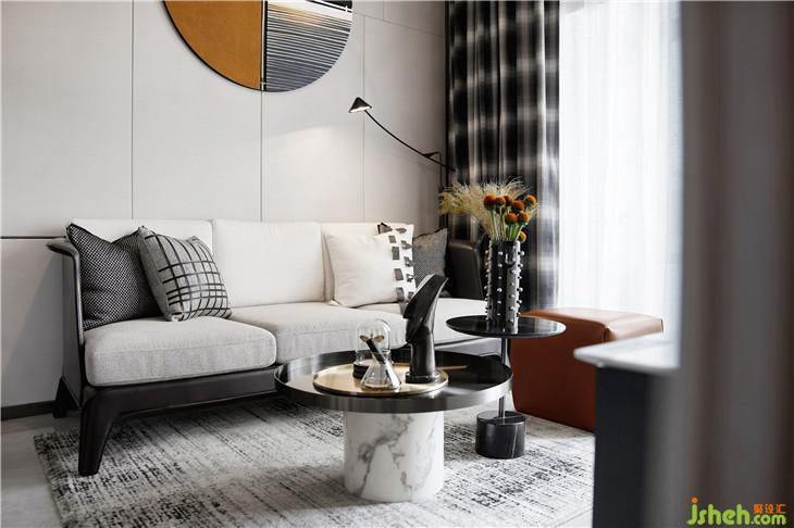 無論是靈動光圈的燈飾,抑或充滿層次感的茶幾,窗簾上的格紋,甚至是花瓶上的鉚釘,都是卸下中規(guī)中矩這個枷鎖的利器。赤茶色掛畫、掛飾與坐凳的加入緩和了強烈的個性,注入溫潤的氣息。