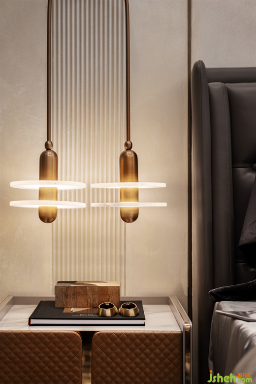 主臥以極舒適的尺度感演繹品質(zhì)宅居的奧義,一面流暢的弧形背景墻,呈現(xiàn)更加貴胄的大宅質(zhì)感。樣板房設(shè)計(jì)在細(xì)微處通過豎向線條創(chuàng)造秩序性,凝練更加雅致的氣韻。