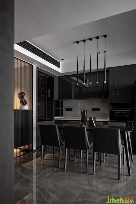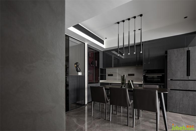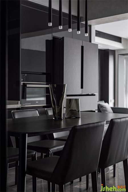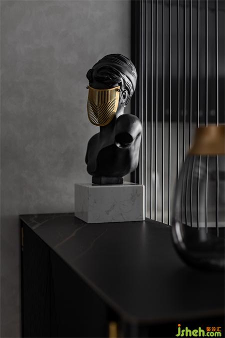 住宅設(shè)計的整體統(tǒng)一性貫穿于整個空間,黑色生態(tài)木是其中最顯性的視覺關(guān)聯(lián)元素,大到空間結(jié)構(gòu),小到材質(zhì)、色彩的呼應(yīng),始終在體現(xiàn)設(shè)計上的貫通和延續(xù),背后的主導(dǎo)是對空間主人生活與氣質(zhì)的契合。