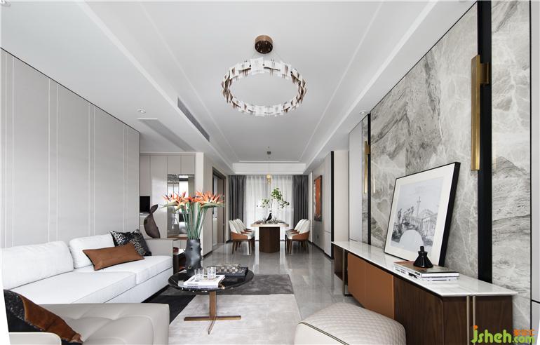樣板房設計全屋空間以棉麻布藝、皮革、金屬增添空間的層次感,局部配以融于時尚的人文藝術(shù)品,不同材質(zhì)與質(zhì)感的融合,營造出室內(nèi)的高級精品與藝術(shù)感,空間使用橙色系加上高級灰咖,使空間呈現(xiàn)出現(xiàn)代時尚高雅低奢的格調(diào)。
