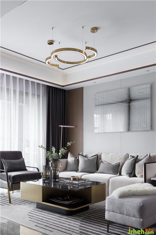 整體空間以干凈利落的灰白色調(diào),鋪敘沉穩(wěn)安寧的氣息,布藝、金屬、大理石、皮質(zhì)等多種元素的碰撞,又為空間增添一份精致獨特的美感。