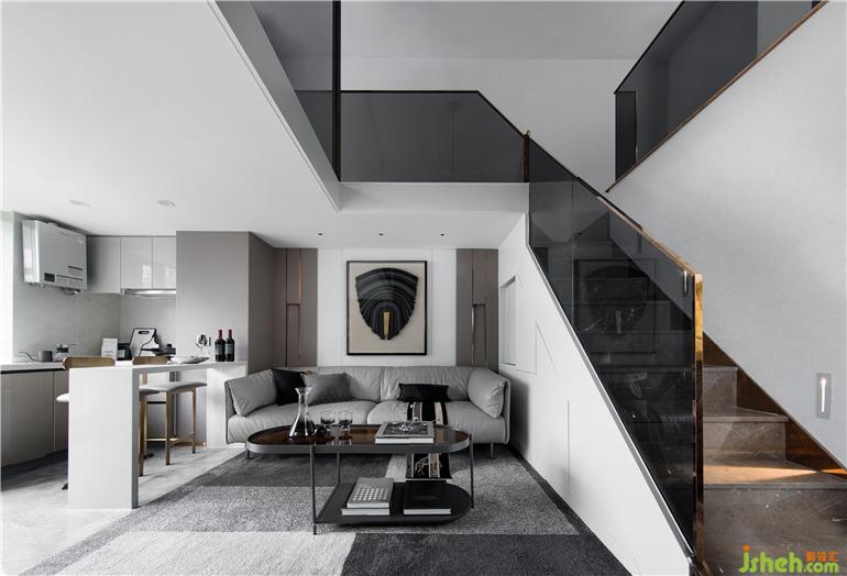 樣板房設(shè)計(jì)將多種材質(zhì)融合碰撞,溫潤(rùn)的大理石、玻璃元素營(yíng)造著空間的通透質(zhì)感,而硬朗精致的金屬與皮質(zhì)元素的搭配,增添著空間時(shí)尚雅致的氣息。考慮到居者的收納需求,設(shè)計(jì)摒棄大面積墻體柜的使用,充分利用樓梯下方零散空間,提升空間的靈活可能性。