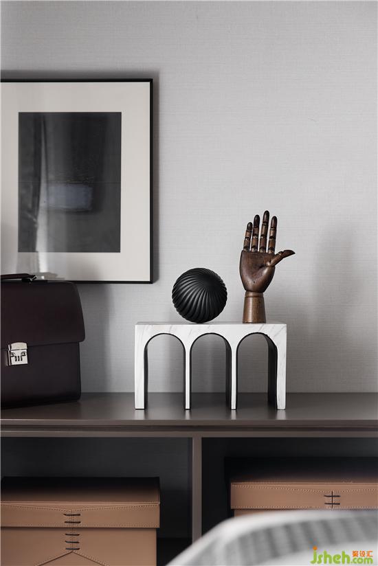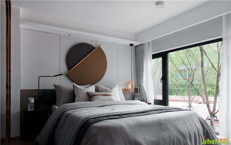 臥室延續(xù)室內(nèi)整體樣板房設(shè)計風格,以理性克制的色彩表達,構(gòu)建了一個低調(diào)舒適的自然空間。大面積玻璃的運用,為其提供充足的采光亦可觀賞戶外的自然景色。另外受于層高的影響,設(shè)計采用線性漫攝燈槽取代傳統(tǒng)燈具照明,做到對空間細節(jié)的全面考量。