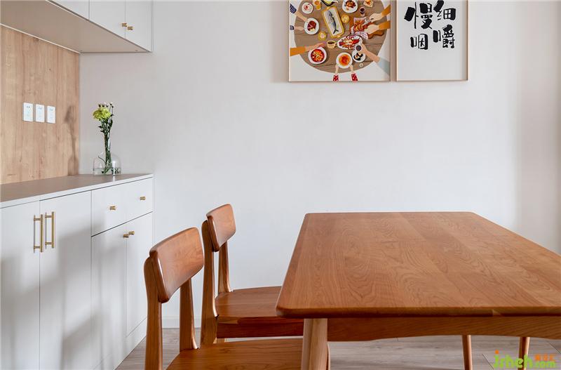 餐廳一角,掛畫的圖案與文字,表達(dá)了一家人其樂融融的生活與飯菜的煙火氣,吃飯就是需要細(xì)嚼慢咽的態(tài)度。