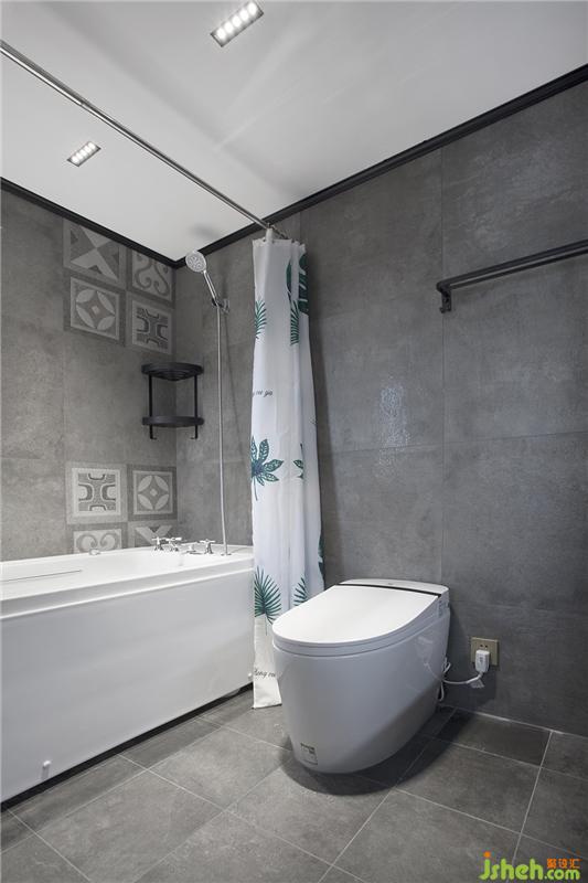 主臥的衛(wèi)生間墻面直接采用了大塊的水泥磚粘貼,質(zhì)感更勝小塊的拼貼。