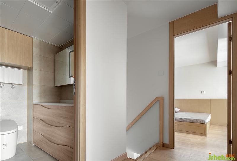 原戶型中沒有明確樓梯位置,我們通過改動(dòng)二層臥室與衛(wèi)生間之間的墻體來實(shí)現(xiàn)樓梯功能,雖縮減了衛(wèi)生間的一些面積,但是并不影響其日常使用,何樂而不為。