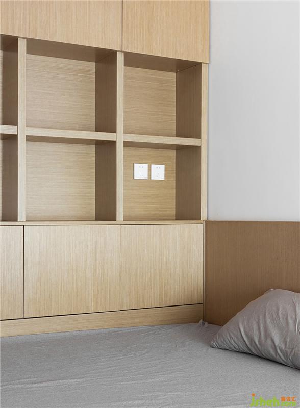 地臺(tái)靠墻部分安裝了木飾面板,起到了床頭作用,日常使用不必依靠到墻體上,避免弄臟墻面與衣物。