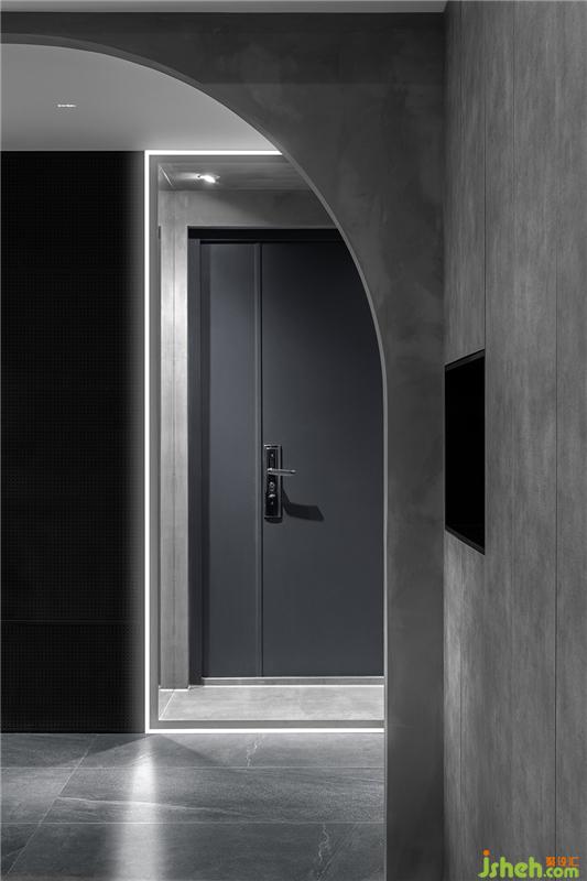 通往房間內(nèi)部的埡口半弧形的設(shè)計,過渡兩個功能區(qū),利用不同的線條造型,讓空間擁有與眾不同的氣質(zhì)。