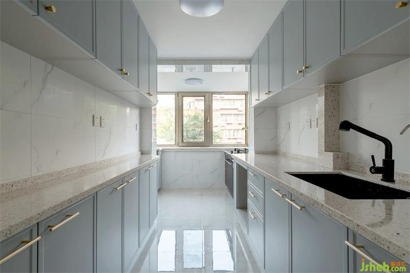 廚房增加了儲物空間,裝修設(shè)計(jì)利用陽臺的空間,把灶臺和洗衣機(jī)都放了進(jìn)來。窗戶做了外飄窗,擴(kuò)大了炒菜區(qū)域的操作范圍。