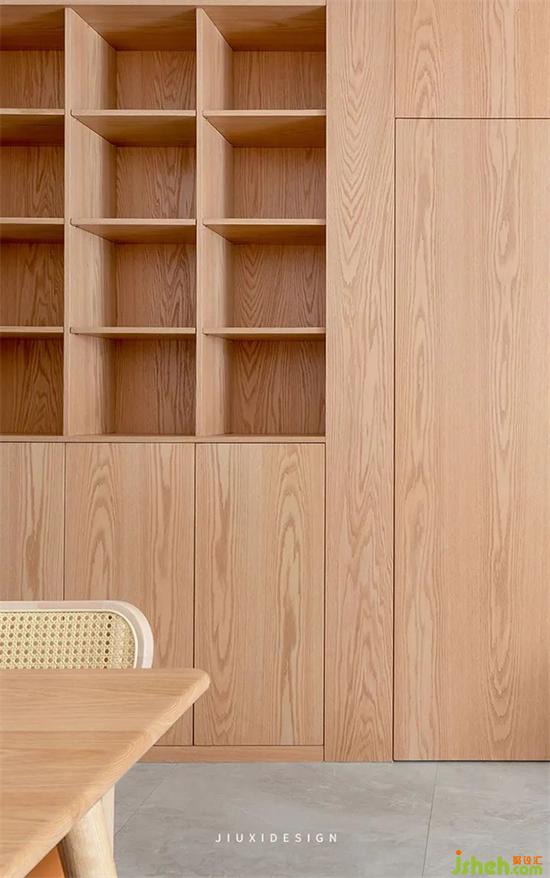 書柜和隱形門細(xì)節(jié)圖,基本維持在同一個(gè)平面,讓空間更加完整。