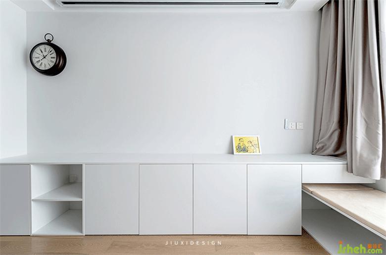 窗前裝修設(shè)計(jì)了與電視柜相嵌入的窗榻,承上啟下的交叉的結(jié)構(gòu),簡(jiǎn)單又利落。在愜意的午后,也可以在窗榻下給孩子閱讀繪本。