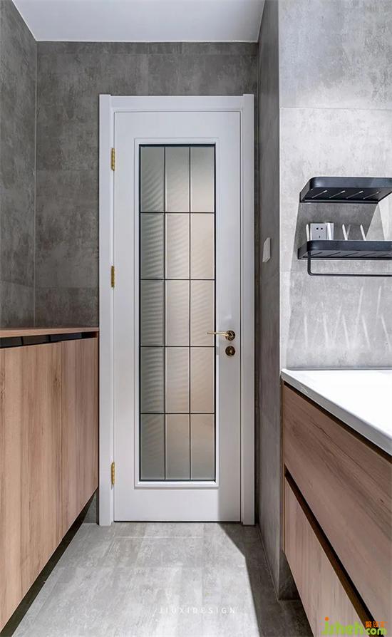 洗手池門(mén)后定制了一整排儲(chǔ)物柜,在不影響動(dòng)線和門(mén)開(kāi)合的前提下,可以最大限度的增加收納空間,也為囤物預(yù)留了場(chǎng)地。