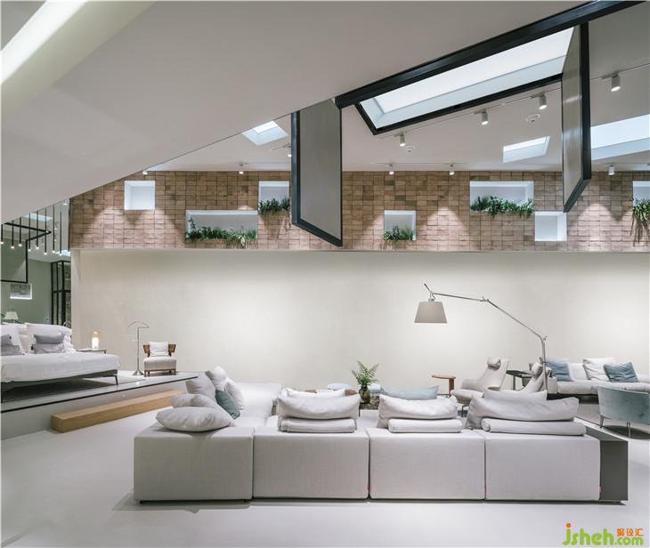 整體的重要性通過(guò)這些來(lái)展示:混凝土作為不同區(qū)域的統(tǒng)一元素,鋼材漆成黑色作為結(jié)構(gòu)元素,木質(zhì)橡木作為產(chǎn)品展示的支撐,最后玻璃和鏡子來(lái)增強(qiáng)深度和輕盈的感覺。