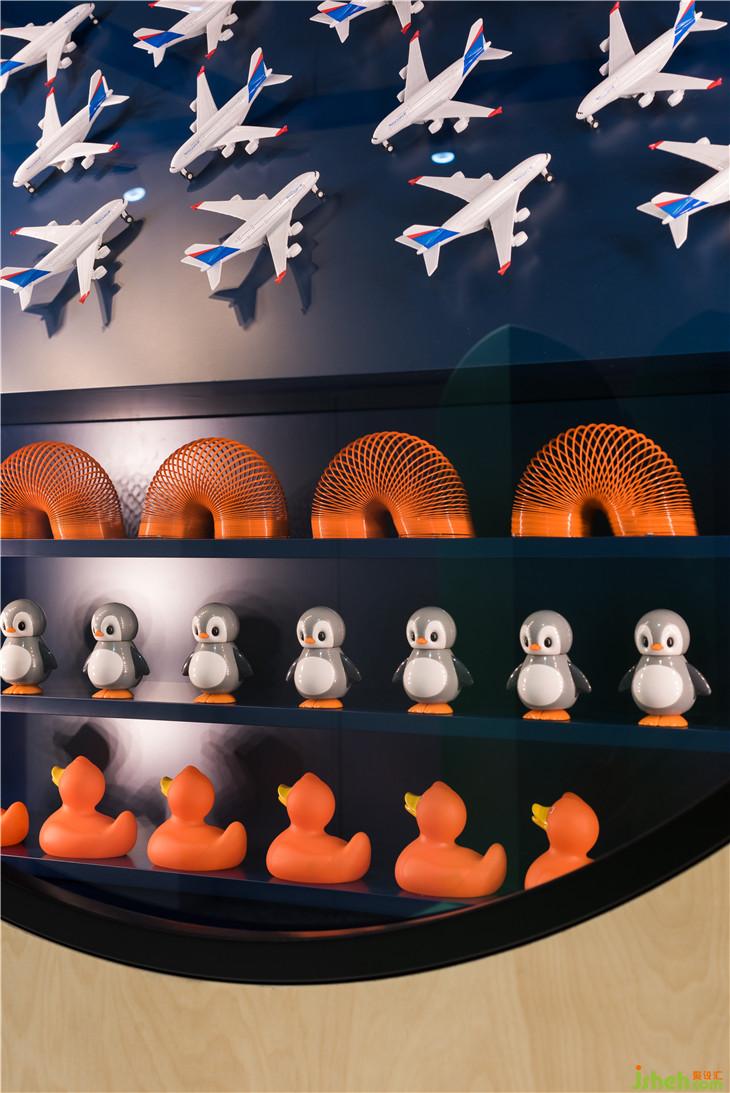 入口處墻面上的圓形展示窗口陳列著各式經(jīng)典玩具,喚起人們熟悉的記憶,同時(shí)標(biāo)識(shí)著棋盤游戲的開(kāi)始。