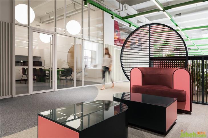 一旦“游戲”開始,人們就進入了開放式工作區(qū),在這里員工工位都臨窗而設,擁有明亮充足的采光和開闊的視野,而較暗的中心區(qū)域則規(guī)劃為室內的交通動線。而在工作區(qū)不時出現的夸張游戲元素,不僅給空間帶來活力氛圍,而且可以起到一個很好的提醒告訴人們工作的作用。