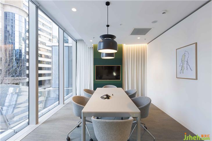 此外,盡管自然光在這個設(shè)計中扮演著重要的角色,但當(dāng)夜幕降臨時,這個地方也不會變得黯然失色。每一個區(qū)域都選用了各種各樣的吊燈來營造合適的氛圍,每一種吊燈都傾向于淺色,與家具明亮的色調(diào)相協(xié)調(diào)。最后,我們的團(tuán)隊采用了現(xiàn)代、平衡的設(shè)計,使Spaces Rialto 成為一個理想的工作場所從早到晚。