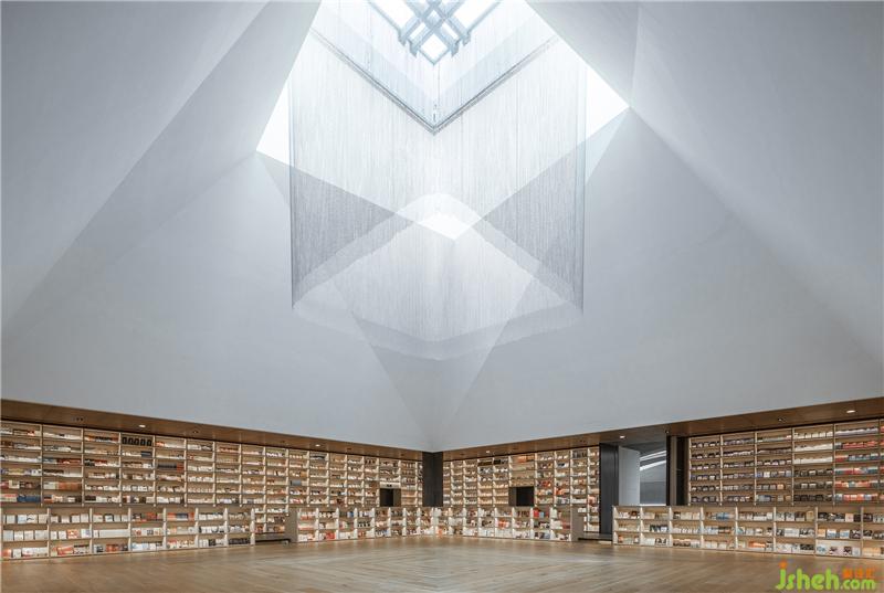 透明天窗是本區(qū)域的設(shè)計亮點,利用自然天光渲染靜謐的環(huán)境色調(diào),將阿房宮賦中的華美殿堂淬煉為當(dāng)代的極簡線條,勾勒出讀者們沉心讀書的理想之地。書城設(shè)計