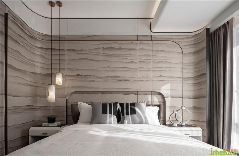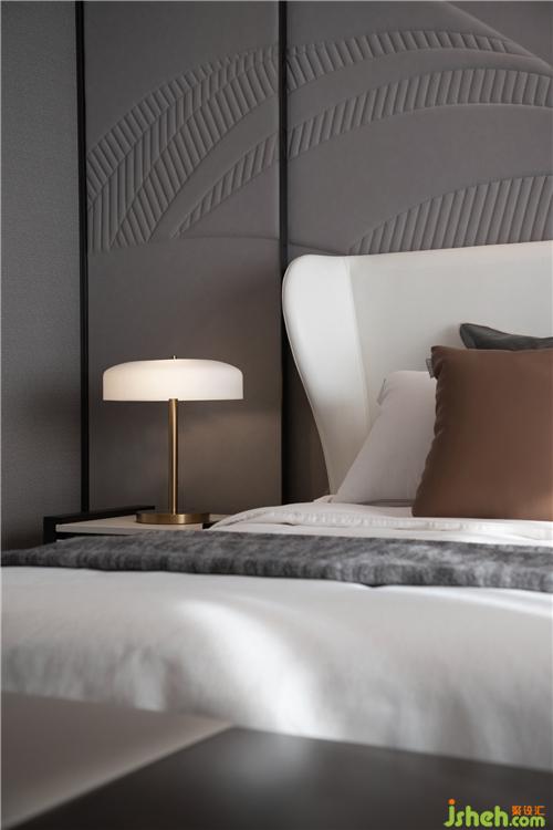 整個項目除了將山、水元素作為靈感,還將游艇內(nèi)飾的線條注入三間臥房,主臥更是以皮雕工藝將海浪的形態(tài)抽象化展現(xiàn)于背景墻之上,深邃的質(zhì)感與雅致灰色形成極強的張力,青島樣板房設(shè)計讓居住氛圍充滿低調(diào)奢華的氣質(zhì)。三間臥房中有兩間為套房的形式,將空間利用率發(fā)揮到極致。