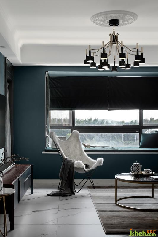 客廳的飄窗,閑暇時可以靜靜地靠在上面,凝視著窗外風(fēng)景,放下繁雜的心情,同時也擴大了客廳的休閑空間。墨綠色的羅馬簾跟整體色調(diào)保持一致,一明一暗之間帶來豐富的內(nèi)涵。