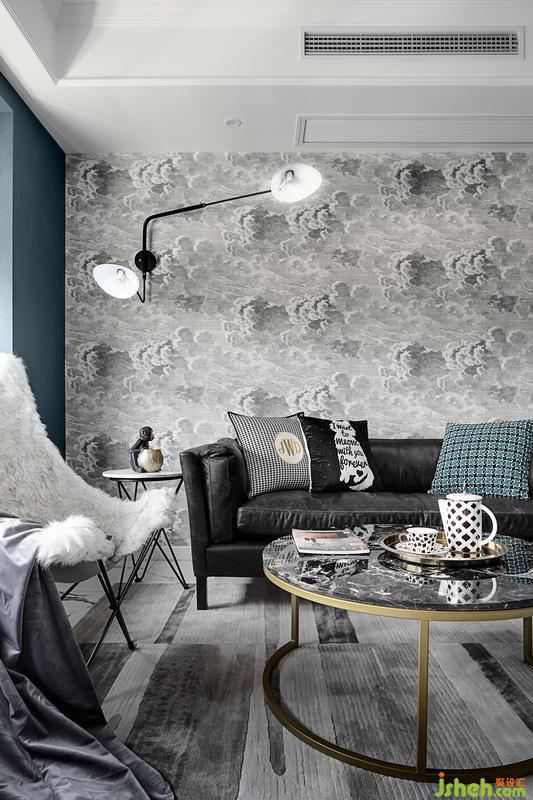 張牙舞爪的壁燈,簡單又時尚。黑色大理石臺面配金色柱腳的茶幾,使得一股高貴而典雅的氣息撲面而來。