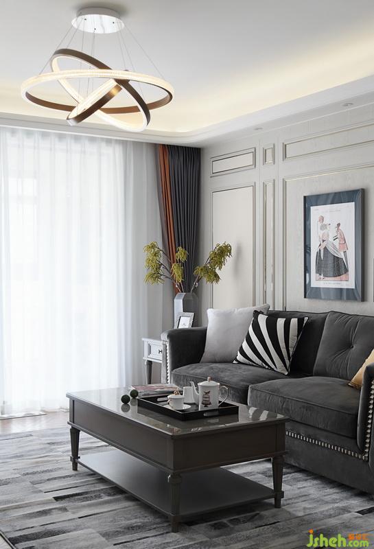 地毯上變化豐富的幾何圖案,高級灰與白色的色彩搭配,有著柔軟細膩的質(zhì)感,延伸了空間的視覺效果,也讓客廳變得更加有趣,有味道?;铱牟鑾缀苎髿猓c地毯搭配在一起可以輕松營造出一個鮮活而又不失溫暖的空間。