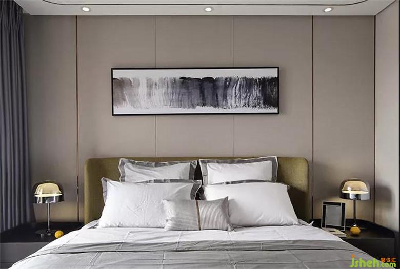 臥室延續(xù)黑白灰的簡(jiǎn)約基調(diào),提供屋主相對(duì)平靜舒適的睡眠環(huán)境,另搭配橄欖綠的布藝床頭,在提升質(zhì)感的同時(shí),也能避免整體氛圍陷入無(wú)趣感。此外,飄窗也運(yùn)用了古銅金色,再放上幾個(gè)格紋抱枕,顯得優(yōu)雅低奢。