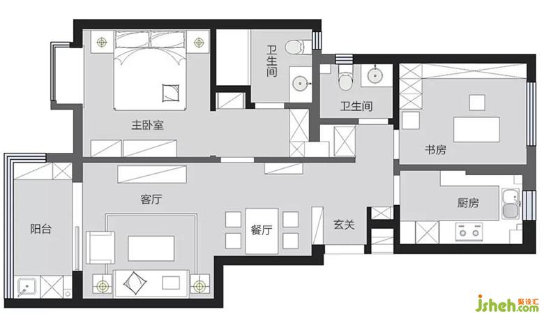 光線明亮的書(shū)房,配上木質(zhì)的家具、地板,以及橄欖綠的椅子,營(yíng)造出相對(duì)溫潤(rùn)的氛圍;至于墻上的書(shū)柜則是定制款,是依據(jù)整屋色系而加以設(shè)計(jì)。