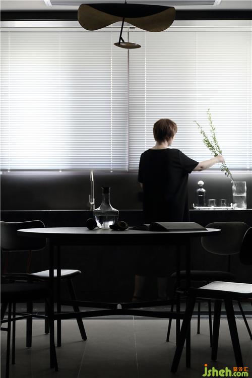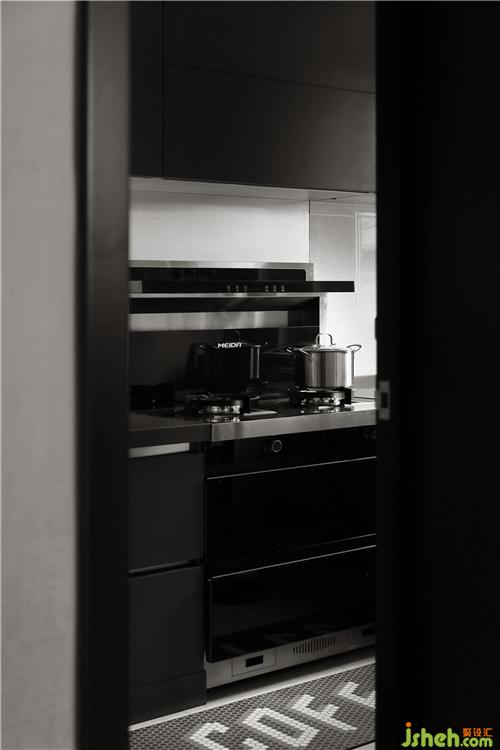 在家里,不管誰是主廚,一個(gè)充滿高級(jí)感的廚房必定會(huì)讓整個(gè)烹飪過程變得更有儀式感。原本廚房就是交付時(shí)的棕色櫥柜,為了保證整體的設(shè)計(jì)效果,重新定制了黑色的櫥柜。廚房的功能不再是過去僅僅烹飪一種功能,它還有社交、溝通等屬性,所以一個(gè)帶有設(shè)計(jì)感的廚房變得尤為重要。