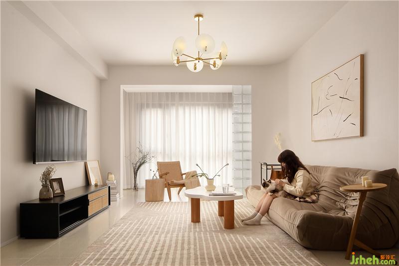 來到客廳,一組養(yǎng)眼的色彩瞬間映入眼簾,奶油的溫潤,南京室內(nèi)設(shè)計(jì)師搭配暖白色、奶咖、木質(zhì)家具,奠定了全屋風(fēng)格的基調(diào)。整體空間在簡約的基礎(chǔ)上,透露出淡雅柔和的平衡,分分鐘柔軟又高級。