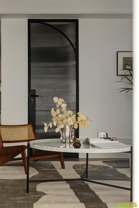 客廳進(jìn)入儲(chǔ)藏間的門采用了網(wǎng)紅的長虹玻璃門,門框和門套均采用極窄工藝,玻璃上多了一條弧線設(shè)計(jì),南京裝修設(shè)計(jì)在空間的極簡與高級中巧妙的營造出優(yōu)雅感,凸顯出整屋的內(nèi)在氣質(zhì)。