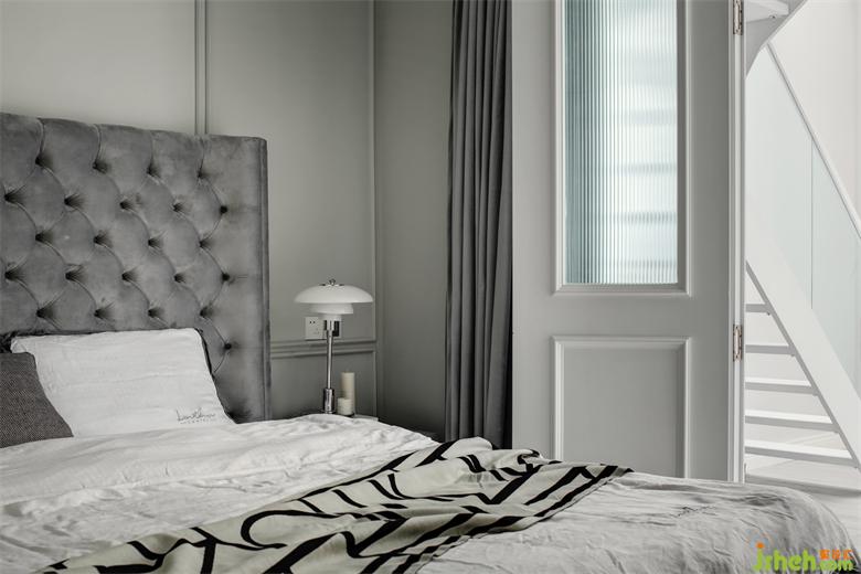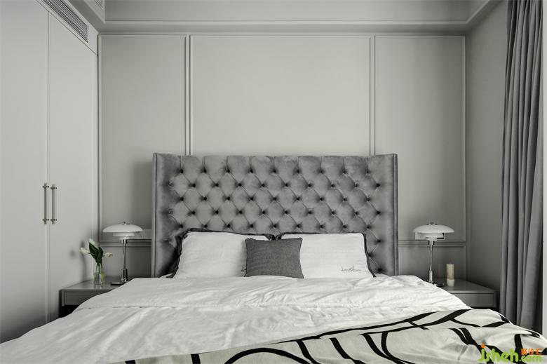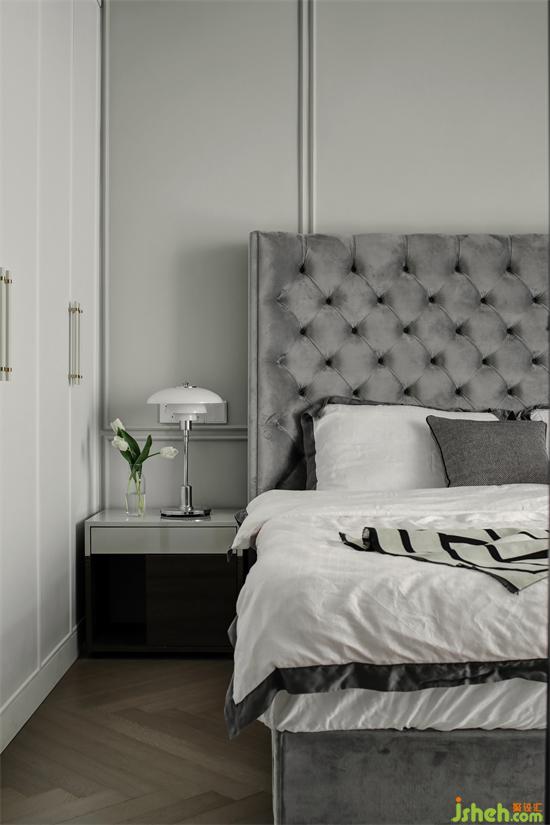 主臥選購了一款灰色的菱格軟包床,溫軟的舒適加上側(cè)耳的包裹感,給人一種溫馨的安穩(wěn),南京裝修設(shè)計(jì)讓空間充滿了神秘的優(yōu)雅。床頭背景墻采用暖灰的護(hù)墻板設(shè)計(jì),簡(jiǎn)單的線條凸顯了空間的立體感,輕松提升臥室氛圍和質(zhì)感。