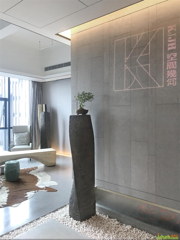 一面是熙熙攘攘的繁華都市,另一面是小橋流水。懷有“心有猛虎,細(xì)嗅薔薇”精神追求,是我們作為設(shè)計(jì)師必備的工匠態(tài)度?!八五e?,山島竦峙”的寓意,盆栽與枯木藝術(shù)、辦公室設(shè)計(jì)潺潺的水流聲襯托出都市中的原生態(tài)美,也就是我們所謂的相對(duì)極簡(jiǎn)主義、禪宗意境的體現(xiàn)。