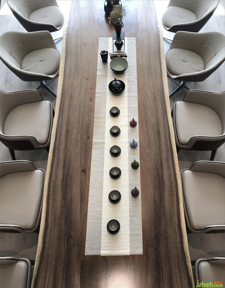 人是唯一能接受暗示的動物,而空間對人的影響也是潛移默化,辦公室設(shè)計通過人手讓空間變成心之所向的狀態(tài),空間也會在不知不覺間影響人——會議室糅合了智能會議系統(tǒng)、茶文化,極度舒適與人性化,精心挑選的自然邊原木臺,混搭現(xiàn)代化的椅子,坐在明清圓椅上會讓人不自覺地把背脊挺直,使整個空間亦嚴(yán)肅亦放松,這就是空間對人的作用力。