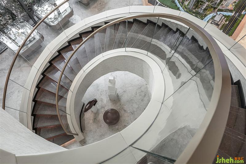 洽談區(qū)域強(qiáng)烈的幾何造型將空間一分為二,落地的全景視窗、木質(zhì)的格柵,層層遞進(jìn)的空間結(jié)構(gòu),是“豁然開(kāi)朗”最直觀的感官鋪陳,空間的力量隨著區(qū)域的分割愈加強(qiáng)烈,墻體的架構(gòu)和燈光線條在占領(lǐng)視覺(jué)的同時(shí)也完成了區(qū)域的分割,靜謐、豐盈,明亮,讓洽談更像一場(chǎng)休憩和心靈的慰藉。
