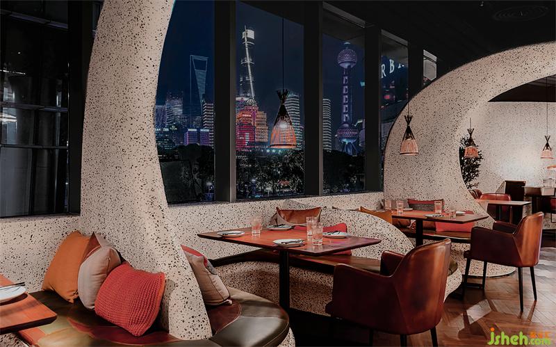 目光追隨著大片玻璃窗望向窗外陸家嘴天際線,當(dāng)夜幕降臨時,也愈發(fā)清晰的使賓客不由自主的連結(jié)了外灘風(fēng)光。上海餐廳設(shè)計繼有西方小吃的美食精髓,又與東方城市的豪放相結(jié)合,引發(fā)對魔都夜色美景的共鳴,共同勾勒出中國人一脈相承的情感漩渦。
