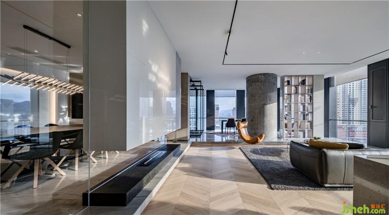 由于整棟大樓玻璃幕墻結(jié)構(gòu),因此工作室就像一個(gè)三面體的玻璃盒子,光線充足。豐富的玻璃隔斷形成通透的空間,相互貫穿,模糊了空間屬性。每個(gè)空間并非獨(dú)立存在,而是相互銜接。敞亮通透的空間,削弱了墻體結(jié)構(gòu)帶來的局促感,為團(tuán)隊(duì)成員之間的溝通、互動(dòng)塑造了一個(gè)開放的辦公環(huán)境。辦公室設(shè)計(jì)