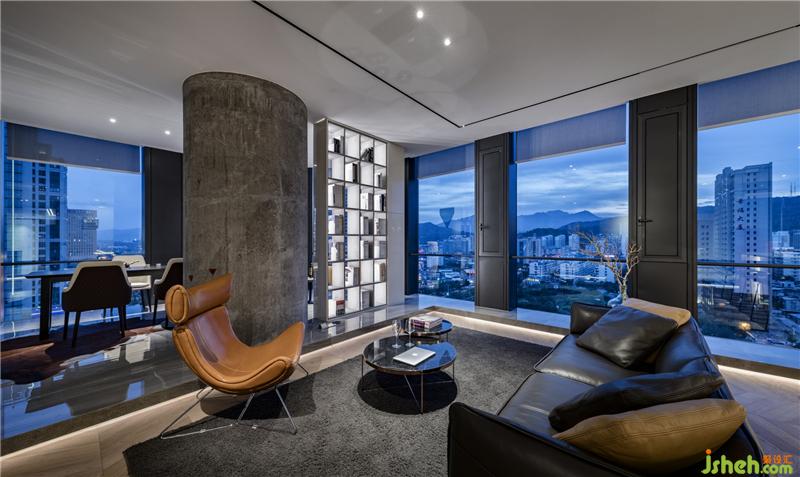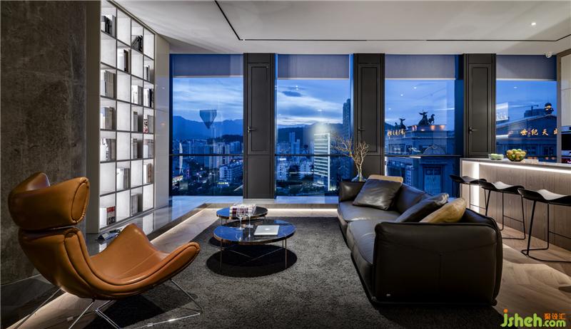 俯瞰整條向南延伸的龍巖大道,洽談區(qū)與茶室是整個工作室觀景的最佳位置。三開的玻璃門兼具隱私與透明,保持與其他區(qū)域的通透與聯(lián)接,契合精致、穩(wěn)重的空間需求。巧妙使用藍(lán)色點綴黑白的空間,帶來亮色的感官體驗,呈現(xiàn)安靜卻不失力度的張力。